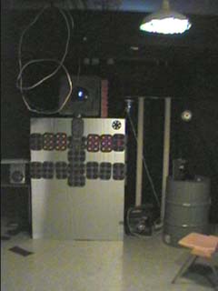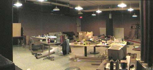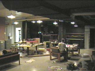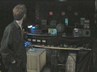 The laboratory was designed and executed by John Moffatt, with production help from Alan Eisinger, Colleen Laird, myself, and several others I cannot remember specifically. In my opinion, it was a monumental achievement, transforming the 10-K lounge into a space that is hopefully convincing as a mad scientist's lair, and is in any event unrecognizeable as what it truly is. It is rivalled but not surpassed by the bar set, which although impressive in the degree to which it transformed the space, is in no way equal in terms of complexity or labor-intensiveness.